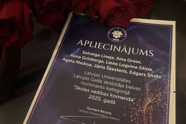 Latvijas Universitāte jau otro gadu rīko pedagogu balvu “Latvijas Gada skolotājs”. Balva tiek pasniegta 11 individuālās un divās komandu nominācijās. Balvas mērķis ir godināt talantīgus pedagogus no visas valsts, apliecinot skolotāja darba izšķirošo nozīmi Latvijas sabiedrības un valsts attīstībai. Šī gada komandu balvas pretendentu vidū bija arī mūsu skolas vadības komanda. Balvai skolas vadības komandu… Turpiniet lasīt Latvijas Gada skolotājs