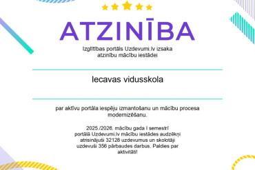 4.decembra vakarā, Vecumnieku vidusskolā tiek īpaši izcelti un godināti Bauskas novada jaunieši. Ievērības cienīga ir jauniešu spēja apvienot mācīšanās prasmes ar skolā un ārpus skolas veiktajām aktivitātēm, veiksmīgi realizējot sevi, kā personību un talantu dažādās jomās. No Iecavas vidusskolas pasākumā piedalījās un uz “Gada jaunietis 2025” titulu pretendēja Dženita Tumaševska 7.c, Elizabete Kļava 8.b, Ēriks… Turpiniet lasīt Gada jaunietis 2025