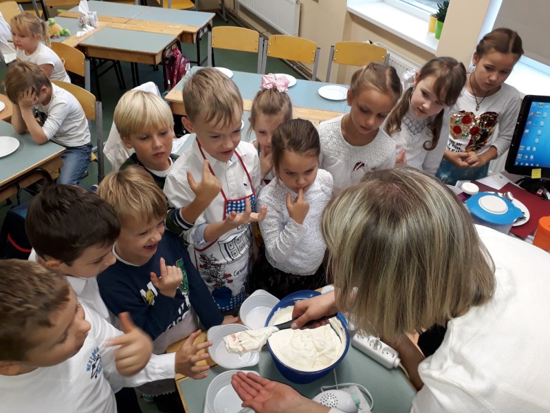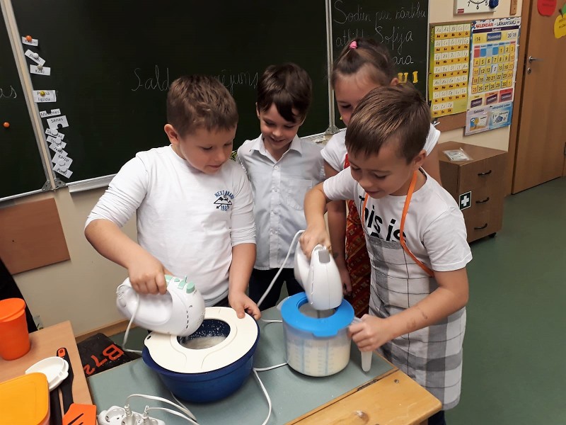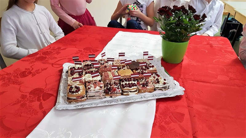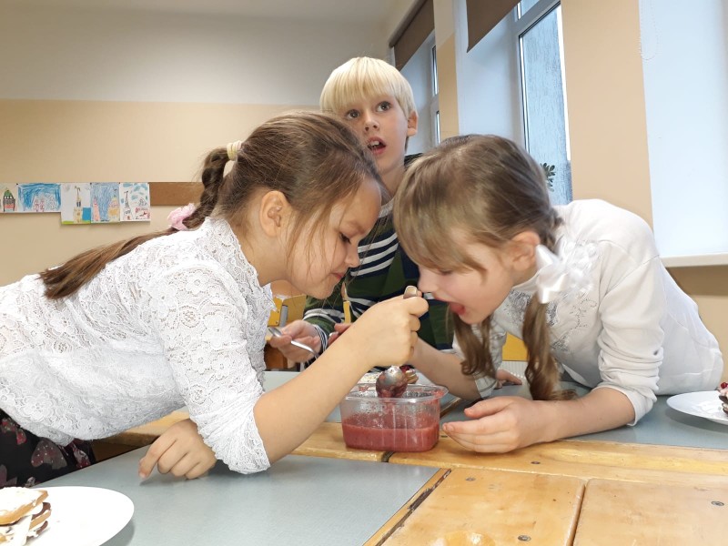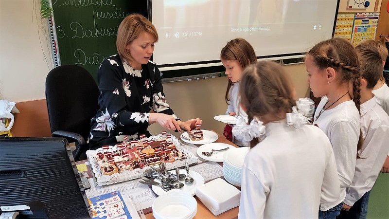 Skola rosās svētku gaidās. Šodien 1.a klasē virmoja salda un satraukuma pilna smarža. Bērni pārbaudīja savas konditora prasmes uzmeistarojot nelielu kūciņu ar putukrējuma un svaigo zemeņu pildījumu. Klases audzinātāja S. Jaunzeme stāsta, ka izdevās patiešām garda!