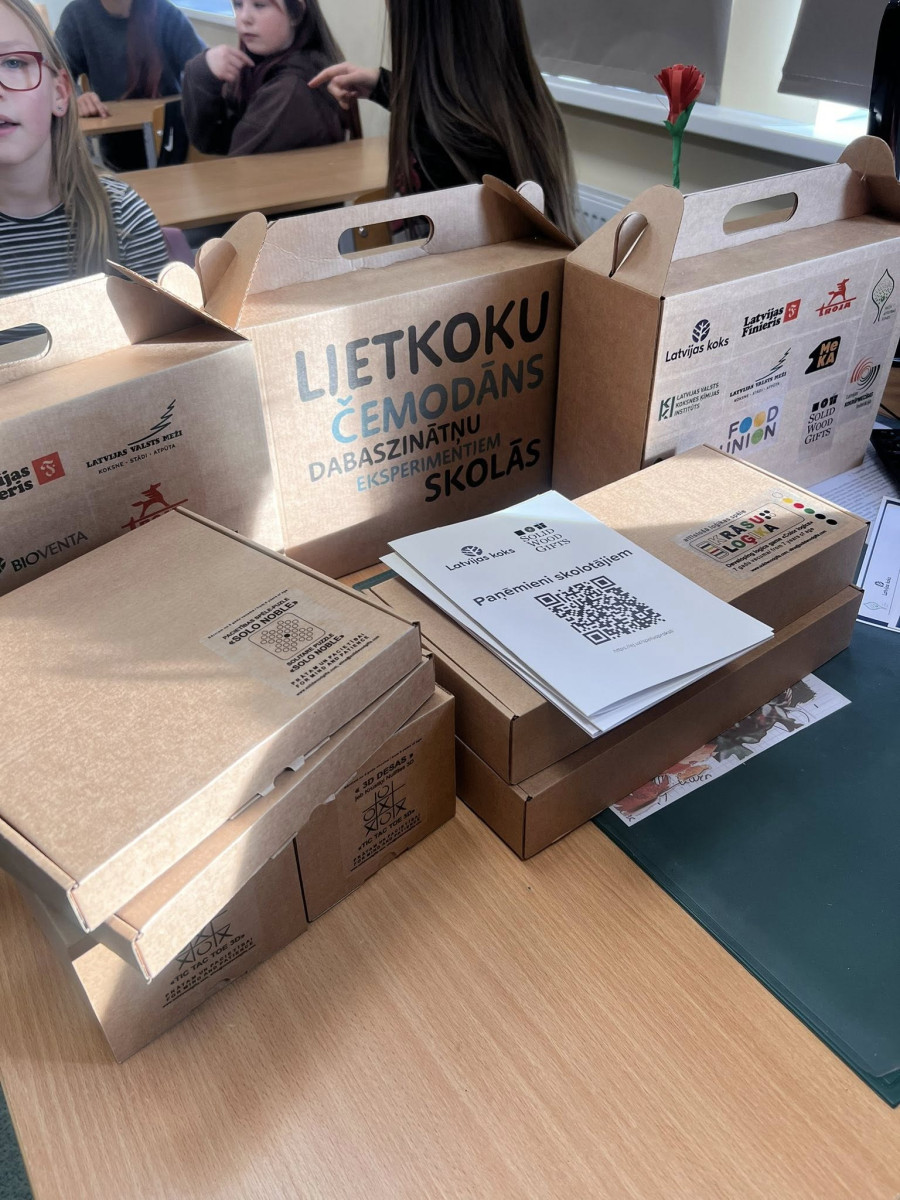 Asociācija “Latvijas Koks” par izglītojošām un aizraujošām nodarbībām skolēniem un uzdāvinātajirm lietkoku čemodāniem, lai veiktu praktiskus eksperimentus ar koksni ķīmijā, fizikā un bioloģijā.