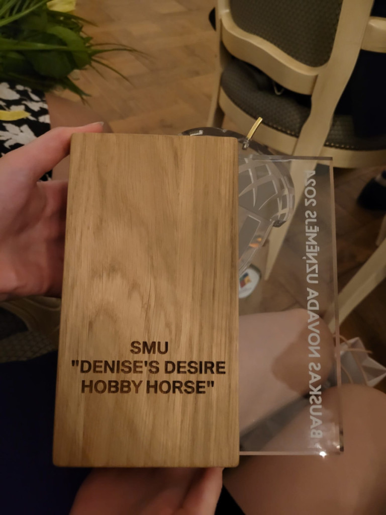 Nominācijā “Gada skolēnu mācību uzņēmums” balvu ieguva mūsu skolas SMU “Denise’s Desire Hobby Horse” . SMU “Denise’s Desire Hobby Horse” ražo īpaši darinātus zirdziņus un šogad piedāvā arī klāt aksesuārus. Hobihorsings kļūst arvien populārāks, tāpēc projekta ideja ir ļoti konkurētspējīga. Skolēnu uzņēmums ir aktīvi piedalījies Cits Bazārs pasākumu ciklos un saņēmis arī nominācijas.
