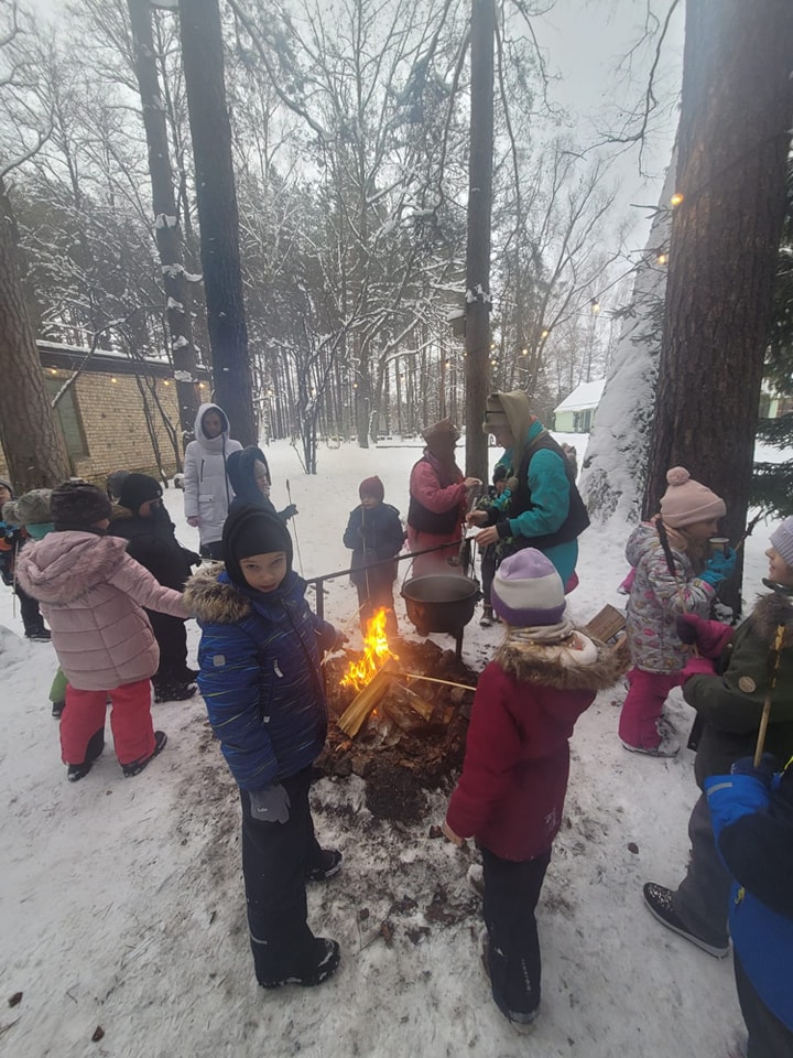 uz iesmiņiem ugunskurā un dzert čiekuru tēju