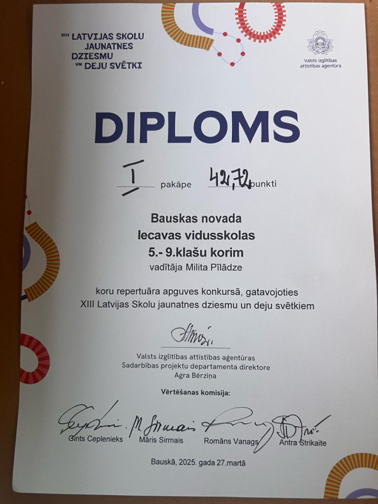 Konkursa žūrija kora izpildījumu novērtēja ar I pakāpi un koris saņēma ceļazīmi vasarā doties uz dziesmu un deju svētkiem!