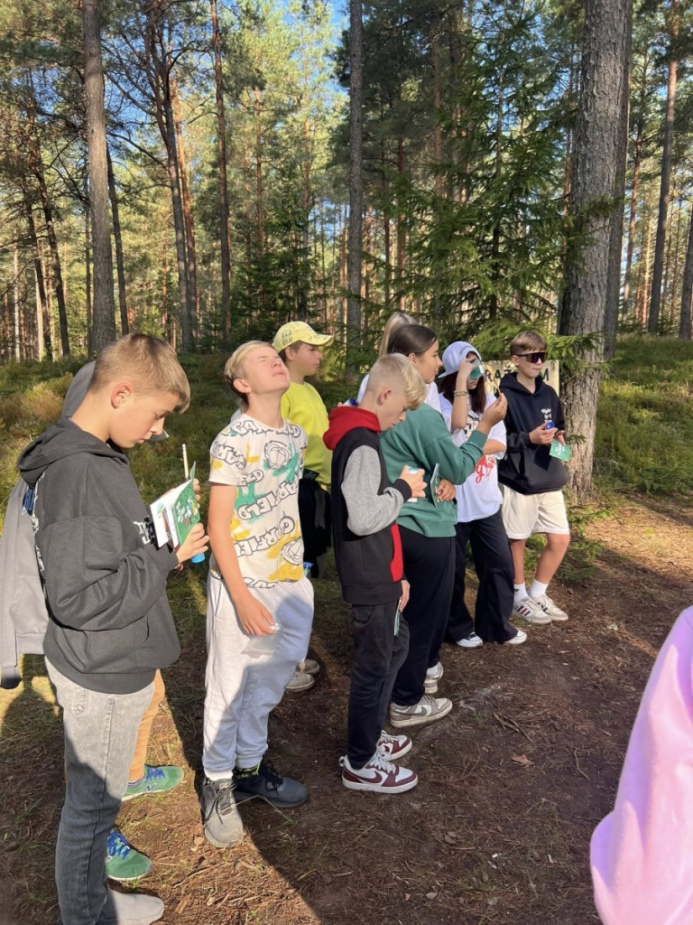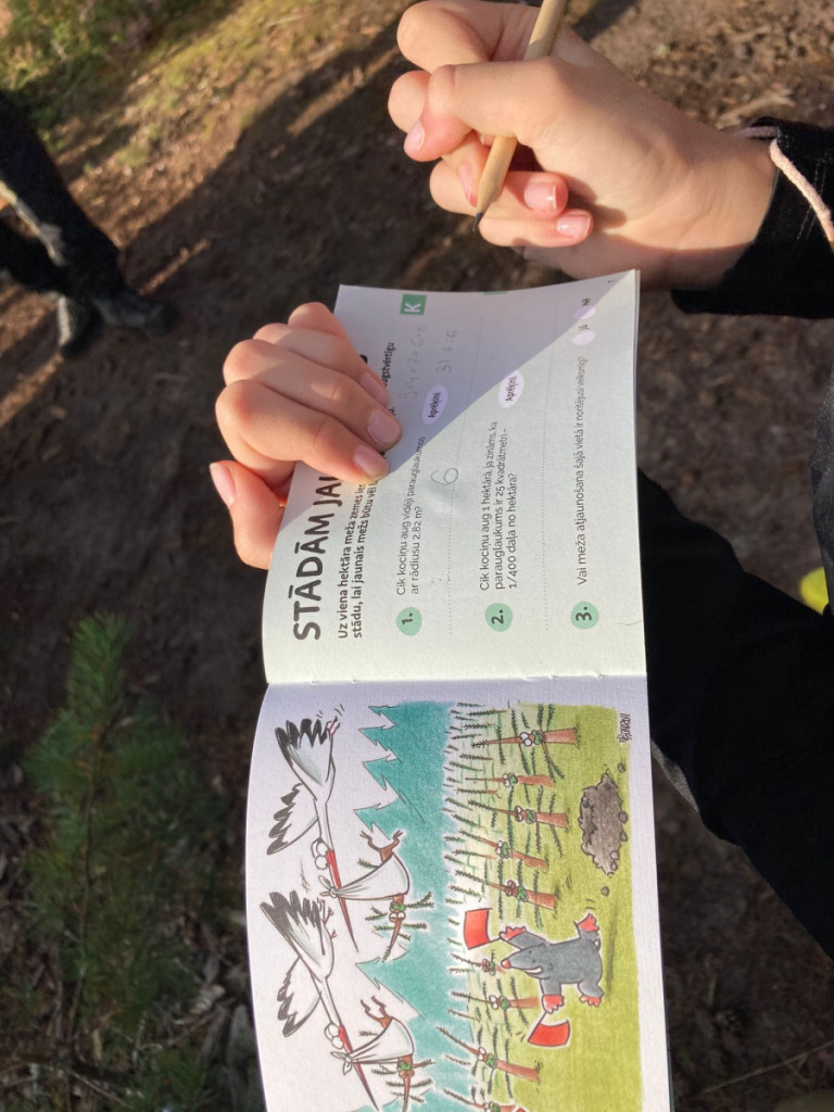 Skolēni pirmdienas rītā devās uz Tomes mežiem, kur pildīja uzdevumus, veica mērījumus, rēķināja un parādīja savas zināšanas par kokiem 10 interesantās stacijās.