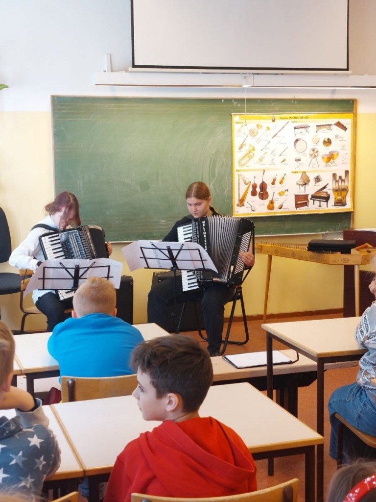 Šodien, 2. un 3. klašu skolēni tika aicināti uz mūzikas stundu kopā ar Iecavas MMS audzēkņiem, lai ieklausītos, iepazītu dažādus mūzikas instrumentus un varbūt, rudenī uzsāktu mācības MMS.
