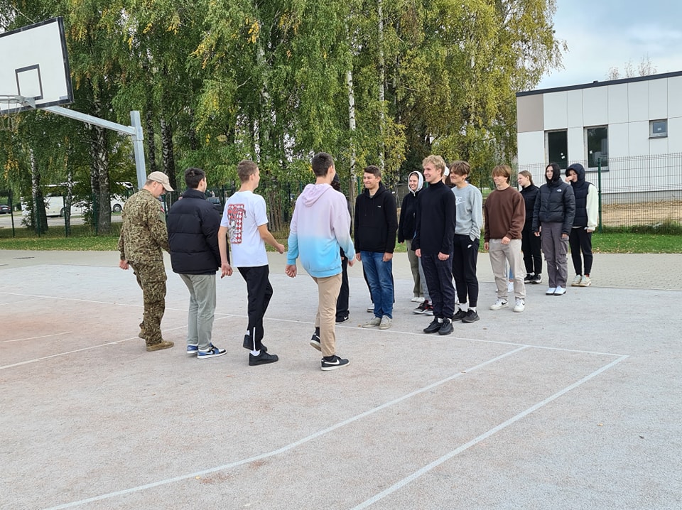 Pasniedzēji ir mūsu skolas absolventi, kas darbojas zemessardzē (Emīls Klāsups un Rolands Rudzis).