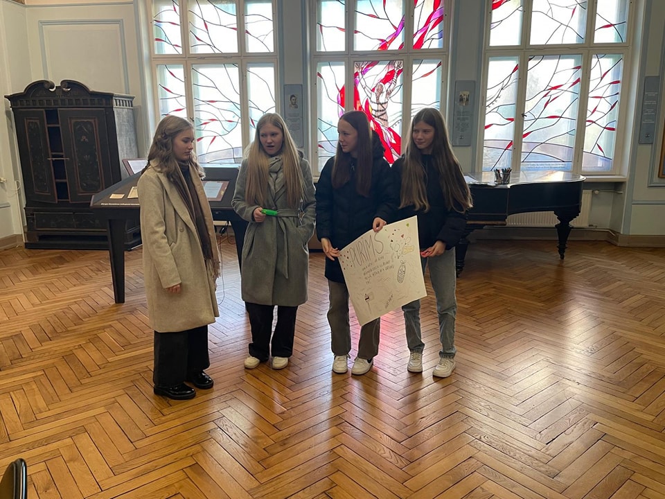 Skolas Soma ietvaros, 7.b klase apmeklēja nodarbību 5D kino formāta veidošanas principiem un producēšanas procesu. Uzzinājām, ka 12 minūšu filmas veidošanas process aizņem 8 mēnešus un aptuvenās izmaksas 100 tūkstoši eiro. Protams, noskatījāmies 5D filmu “Look at Riga”. Pēc tam devāmies uz Ebreju kultūras centru, kurā apskatījām telpas un nelielu muzeju gida pavadībā. Nobeigumā skolēni darbojās grupās, zīmējot plakātu par dotajiem ebreju svētkiem – ebreju Jauno gadu, Hanuku, Pesahu, Purimu un Sukkotu. Tāpat, aktīvai atpūtai un izklaidei, apmeklējām SkyPark.