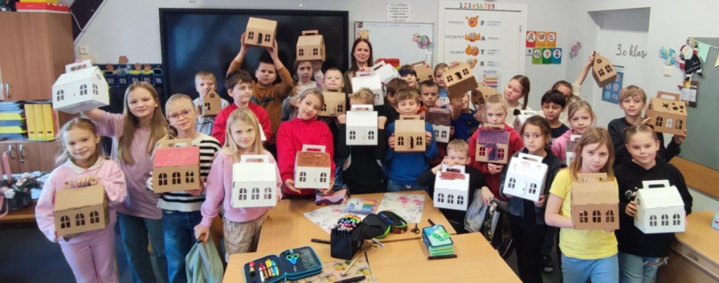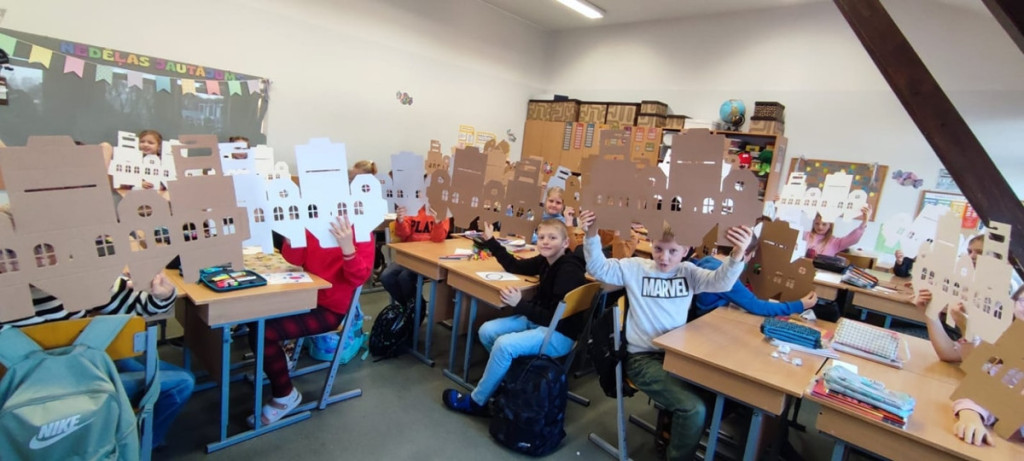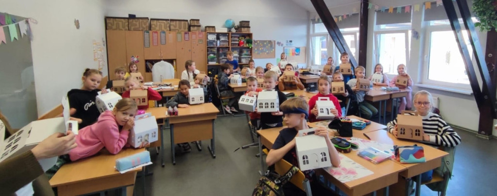 Stundas noslēgumā visi bērni ar prieku piedalījās radošajā procesā, izlokot un krāsojot katrs savu gofrētā kartona mājiņu. Tas ļāva izpaust savu individualitāti un radošo potenciālu!