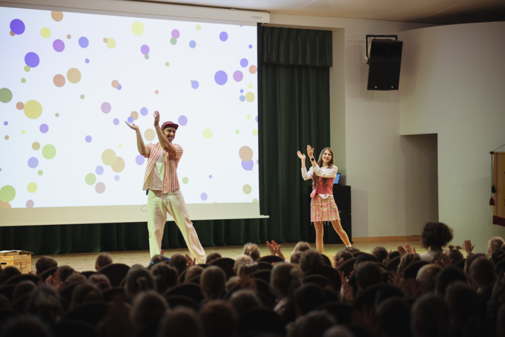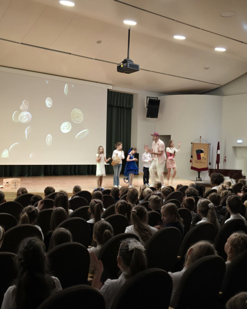 Piektdienas rītā 1.-6.klašu skolēni piedalījās koncertnodarbībā “Skaitāmpantiņu dziesmiņas”. Nodarbībā mūziķi Signe un Jānis Aizupieši kopā ar skolēniem atraktīvā un muzikālā veidā iepazinās ar dažādiem skaitāmpantiņiem, latviešu rakstu zīmēm un to nozīmi, mīklām un tautasdziesmām.