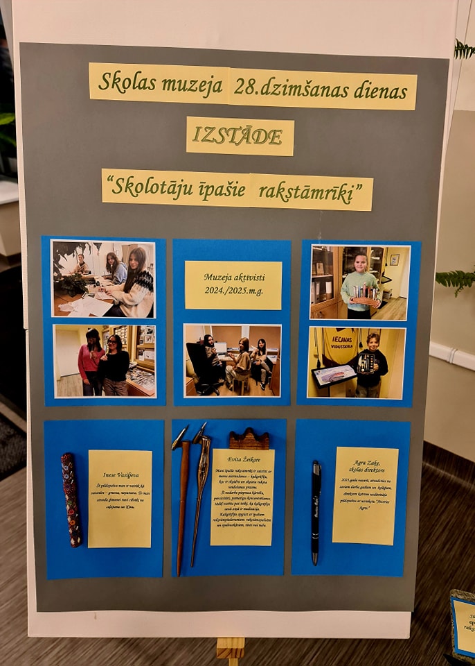 Iecavas vidusskolas muzeja 28.dzimšanas dienu šogad svinam, domājot par rakstāmrīkiem. Vestibilā esam iekārtojuši izstādi “Skolotāju īpašie rakstāmrīki”, sarūpēti arī daži senāki rakstāmrīku piederumi no muzeja kolekcijas. Interesanti un pārsteidzoši!